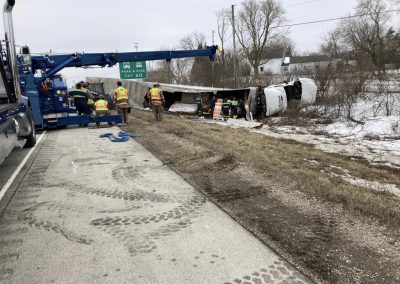 The Jackson Fire Department along with the Sheriff’s Office are still on scene as the right lane of Interstate 41 remains closed to assist in the removal of the semi and its cargo. Interstate 41 is expected to be fully open prior to the evening rush hour.