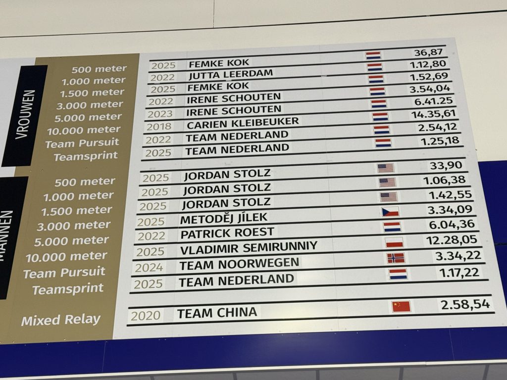 The girls at the credential check-in at the Thialf giggle when mentioning Jordan Stolz. “We are handing out accrediations and he walks up and said, ‘Checking in for Jordan Stolz,’ and we already know that. Who doesn’t know Jordan.”