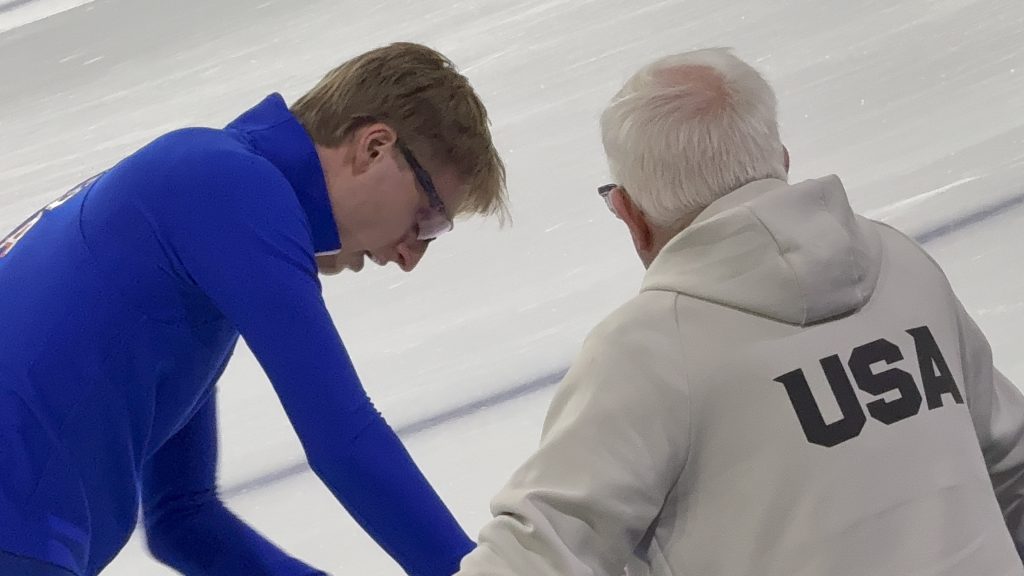 Coach Bob Corby said, Stolz set the bar high a couple years ago when he secured both the Sprint and the Allround titles at the Thialf. He said we’ll have to see how he fairs this weekend.