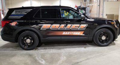 The new look uses a little more “Hartford Oriole” orange to show our community pride. The Police Department is testing out a new three year rotation for cars to determine what actual cost savings might be received by keeping cars one more year. While all squad cars may get traded in with a moderate number of miles, the actual engine hours due to excessive idle time is what wears them down.
