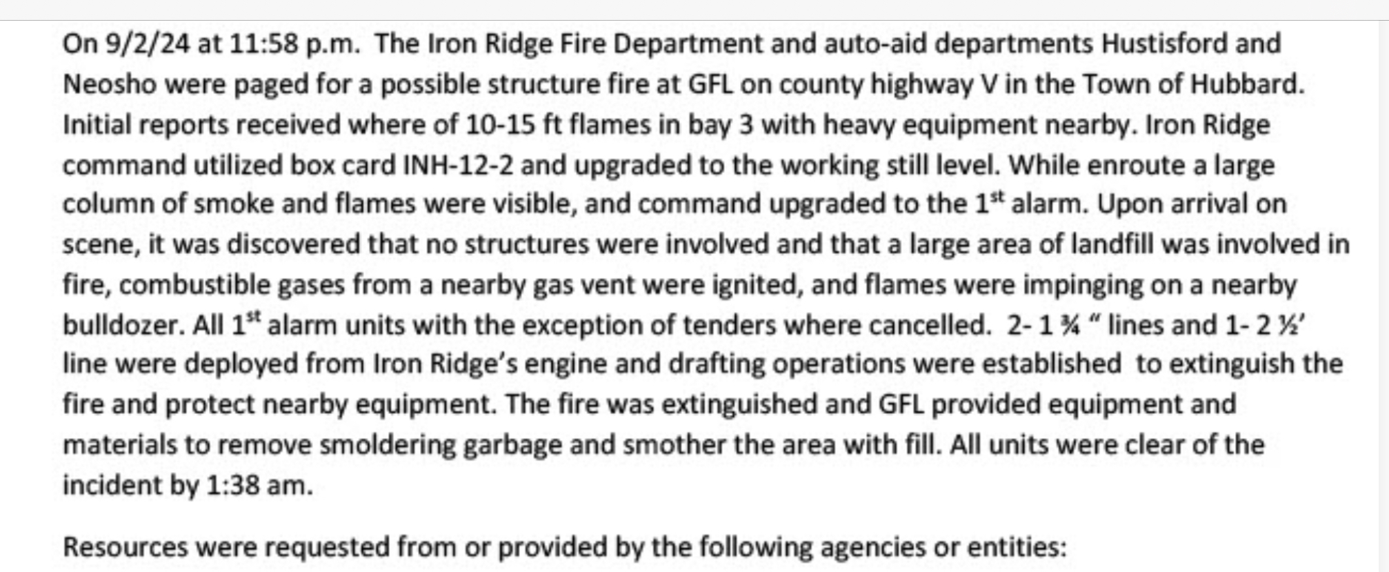 September 3, 2024 – Dodge Co., Wi – Fourteen departments responded to a fire in Dodge County early Monday morning, September 3, 2024.