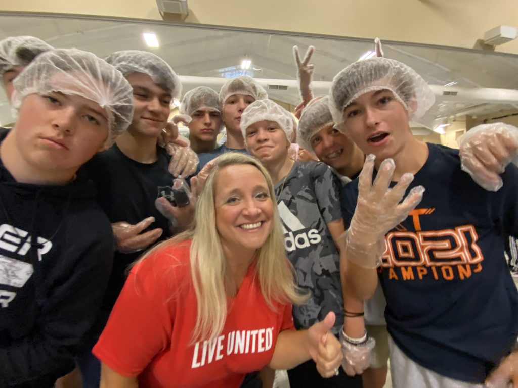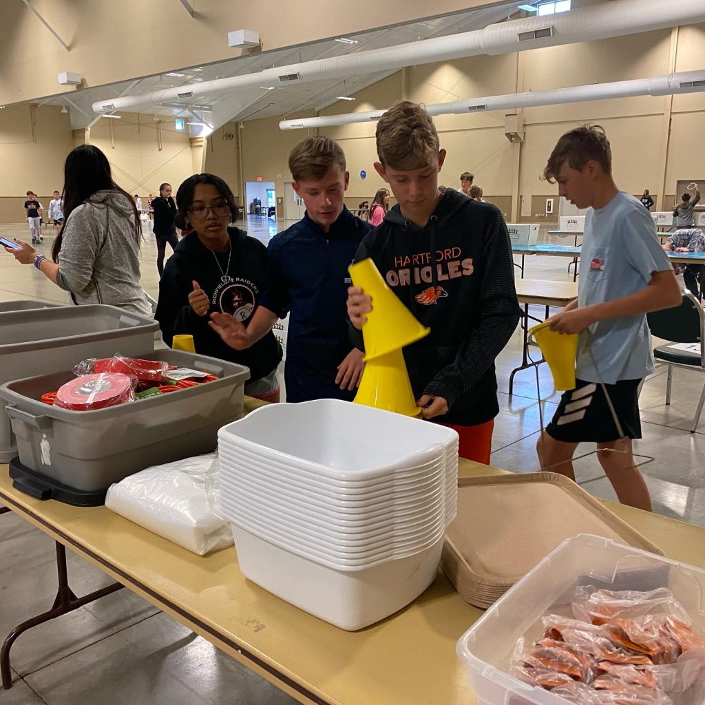 September 15, 2022 – Washington Co., WI – Kali Restivo’s 8th grade class from Richfield Middle School brought some Raider’s energy to the Ziegler Family Expo Center on Wednesday morning as the class helped United Way of Washington County set up for its afternoon food preparation event.