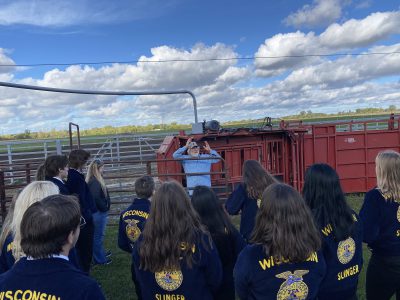 The Slinger School District was represented by eight Slinger FFA members on the coach bus, chartered with neighboring schools from around the area. Traveling with members from Lomira, Laconia, Dodgeland, Oakfield, Campbellsport, Waupun, and Kewaskum were Dylan Rick, Silas Green, Abbi Wolf, Madi Hess, Ann Thao, Abigail Benishek, Fiona Humphrey, and Chloe Cauwels.