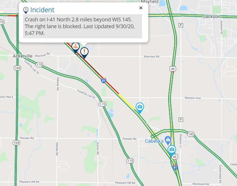 September 30, 2020 – Washington Co., WI – There’s a big backup northbound I41 just past WIS 145. Emergency crews are on scene.