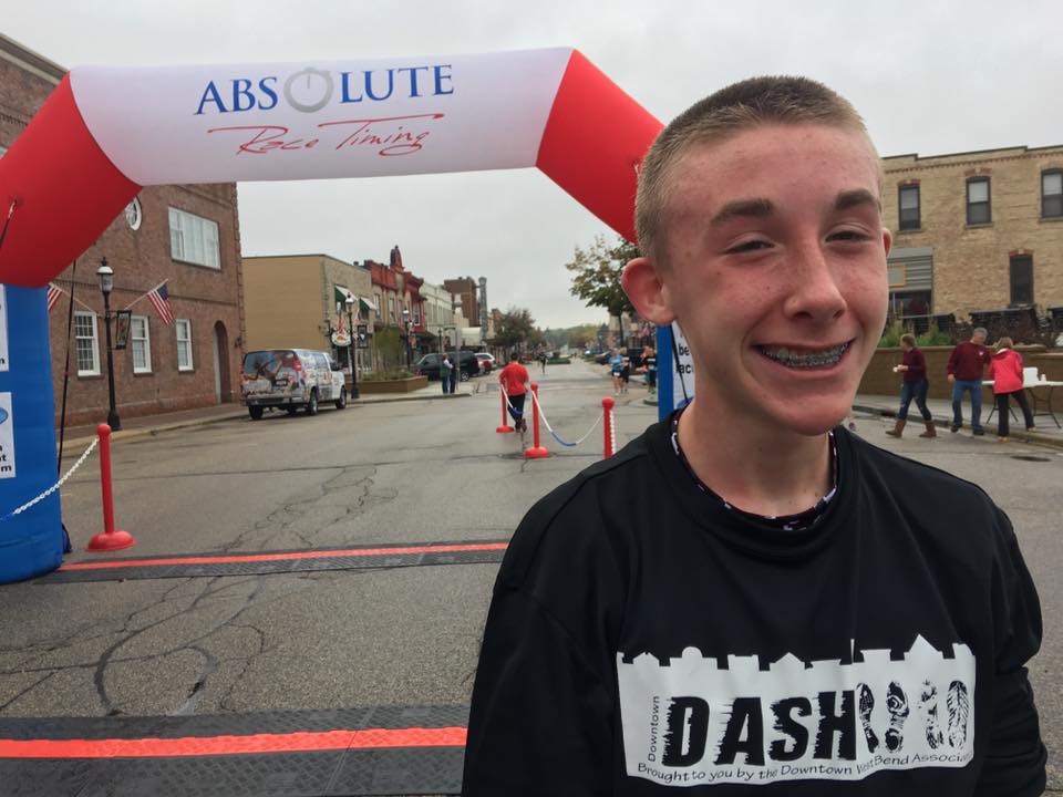 First place finishers at Sunday’s 4th annual Downtown Dash include Aidan Schmidt, 14, (photo below, left) of West Bend who finished the 3.1 mile race in 21 minutes and 11 seconds and Elizabeth Bird, 38, (photo below, right) of Cedarburg who finished in 21:52 and in third place overall.