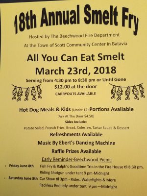 March 23, 2018 – Beechwood, WI – This is one of the best Smelt Frys you can attend. I would strongly urge to visit our brothers and sisters at the Beechwood Fire Department.