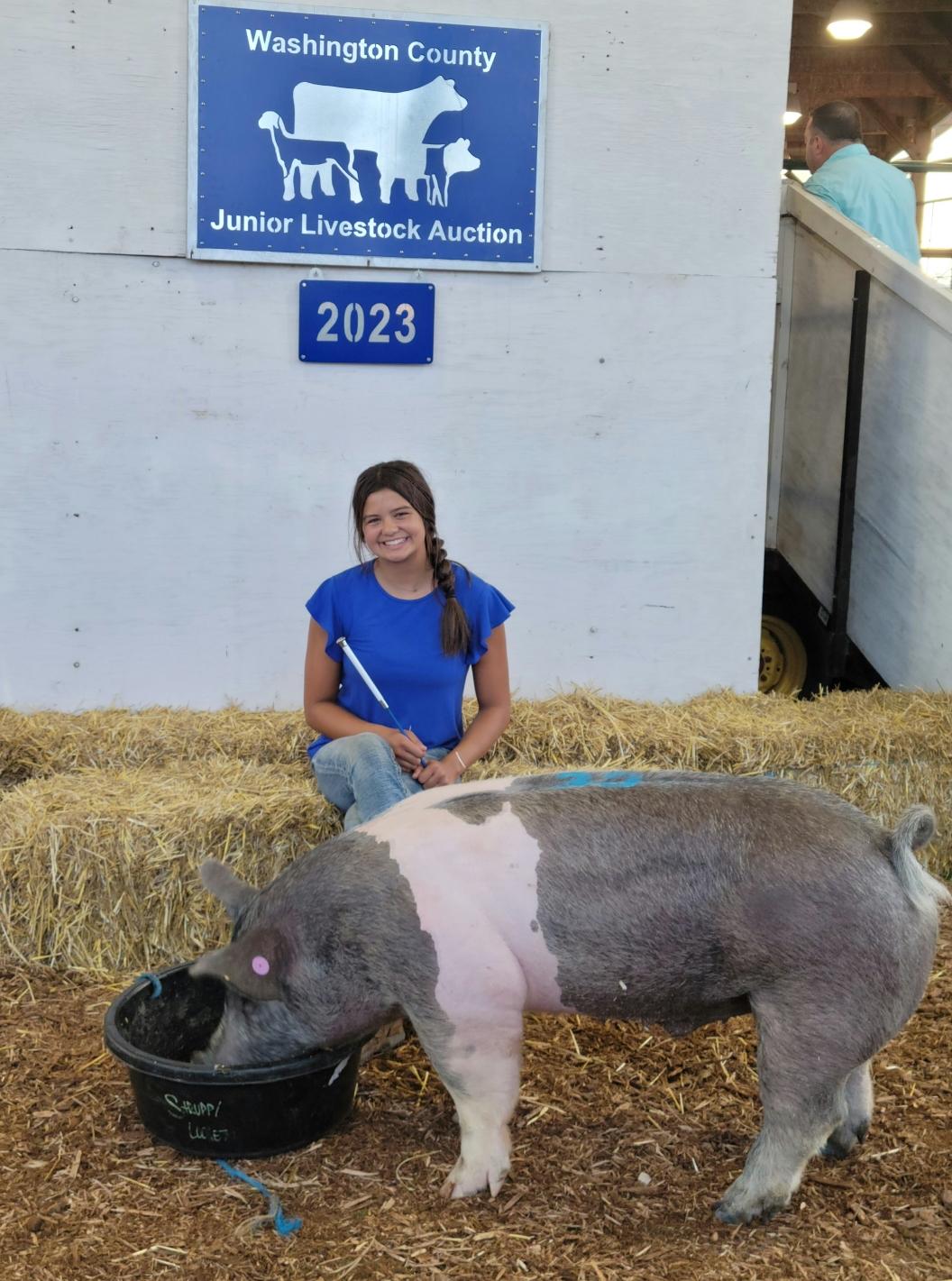 I want to thank Doug at West Bend Elevator for buying my 279-pound HBR hog as well as MGS Manufacturing Group for buying my 1,439-pound steer from the 2023 Junior Livestock auction.