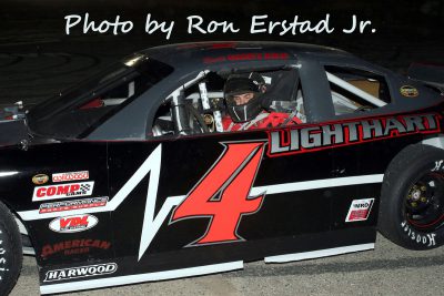 Justin Okruhlica made a late charge to win the 25-lap modified feature over Aaron Marthaler and Bill Tandetzke. Tyler Schley and Carl Benn finished fourth and fifth respectively. Bill Prietzel won the modified heat race and Justin Okruhlica was the fastest qualifier by completing a lap in 13.324 seconds.