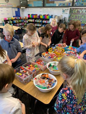 West Bend, WI – On Tuesday, November 30, the 3rd graders at St. Frances Cabrini Catholic School were stuffing stockings for the Full Shelf Food Pantry, and it was a big job. They hoped to receive enough donations to sink the boat, and they succeeded.