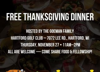 Hartford, Wi - The Goeman Family warmly invites neighbors to a Free Thanksgiving Dinner at the Hartford Golf Club on Thursday, November 27, 2025,...