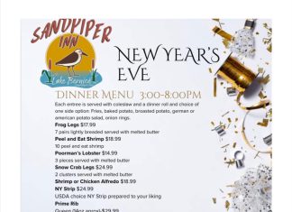 Lake Bernice, Wi - Sandpiper Inn on Lake Bernice is offering Christmas Eve dinner and carryout options. See menus below.