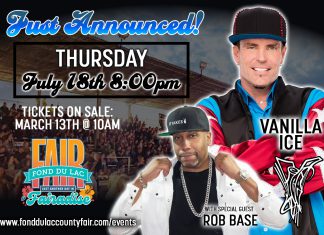 Fond du Lac County Fair announces Vanilla Ice as Thursday, July 19, headliner for...