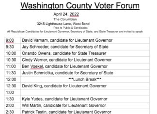 West Bend, WI - On Sunday, April 24, Common Sense Citizens of Washington County will be holding a free informational voter forum featuring conservative...