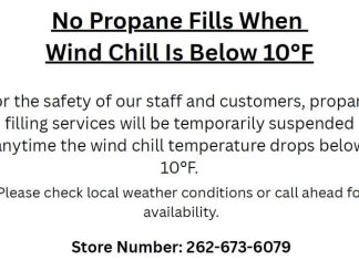 Cold weather propane notice at Goeman’s Rapid Mart on Hwy 60 in Hartford, WI