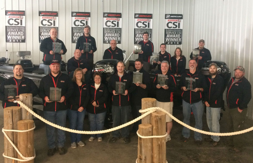 February 24, 2017 – West Bend, WI – Mercury Marine has presented Cedar Lake Sales of West Bend, WI, its prestigious Service Customer Satisfaction Index (CSI) Award for 2016.