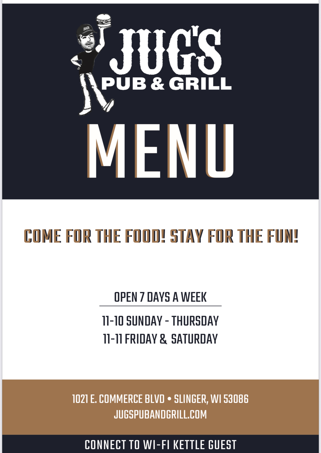 Slinger, WI – The new Jug’s Pub & Grill, 1021 E. Commerce Blvd, in Slinger, WI, is expected to open shortly and owners Jason Jug and Steve Kearns are giving neighbors a quick sneak peek at the new menu.