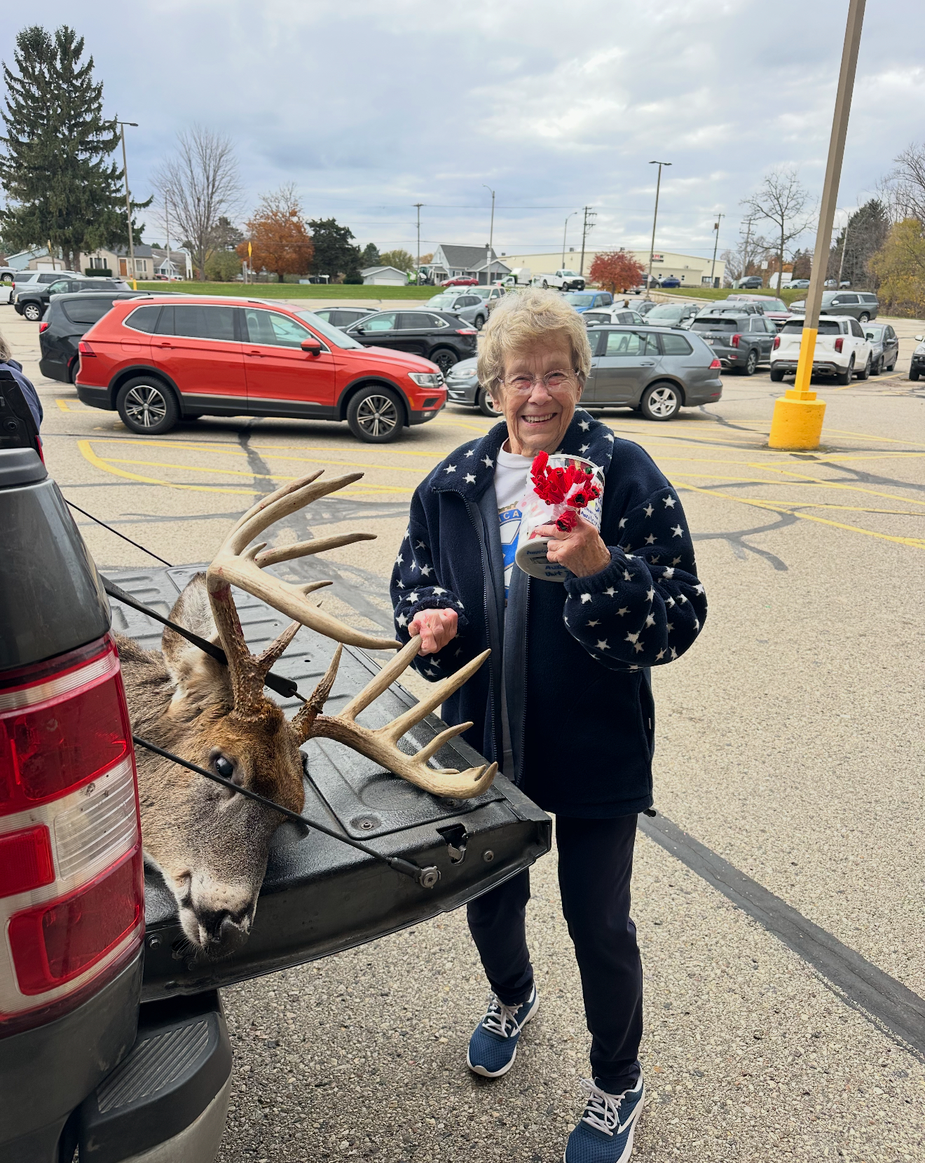 Dreher was so proud of his trophy buck, he stopped to show his mom.