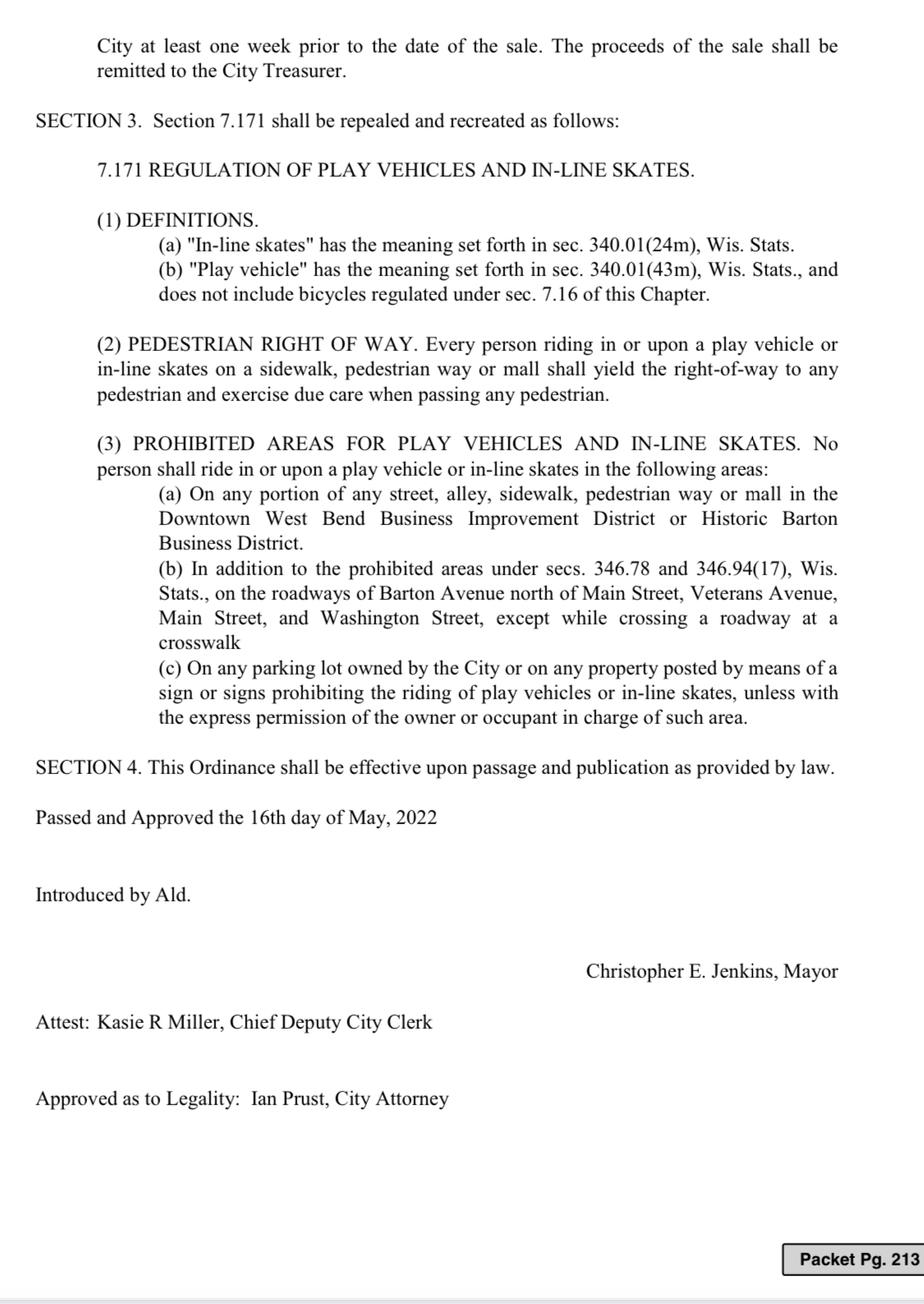 Truly abhorrent. Motor vehicles cause nearly 40,000 deaths every year, and you’re justifying this with, “The City of West Bend has determined it to be necessary for the health and safety of residents”. I believe your priorities are not straight here. This will, if anything make people not want to use alternative modes of transportation like bicycles, in-line skates, scooters, etc. They’re not the problem here.