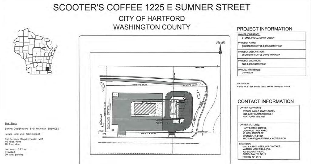 October 10, 2022 – Hartford, WI – The Hartford Plan Commission will review a proposal for a coffee shop behind the Dairy Queen, 1245 E. Sumner Street.