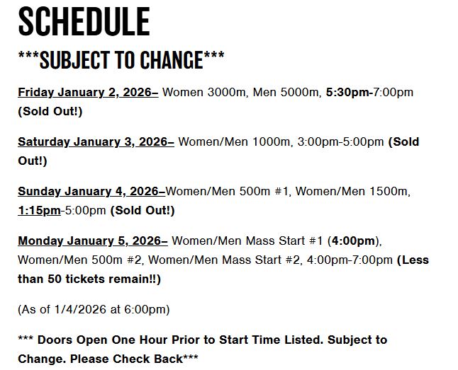 January 5, 2026 – Milwaukee, WI – Day 4 of Olympic Trials will feature the Mass Start and the second 500m at the Pettit National Ice Center as 14 skaters vie for a final spot on Team USA for the 2026 Winter Olympics in Milan, Italy. Coach Bob Corby has a very entertaining review of Mass Start strategy and one prediction for the race at the Olympics.
