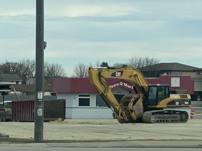 March 15, 2021 – Hartford, WI Demolition of the old Petro-Q-Mart getting underway today to make way for new Starbucks.