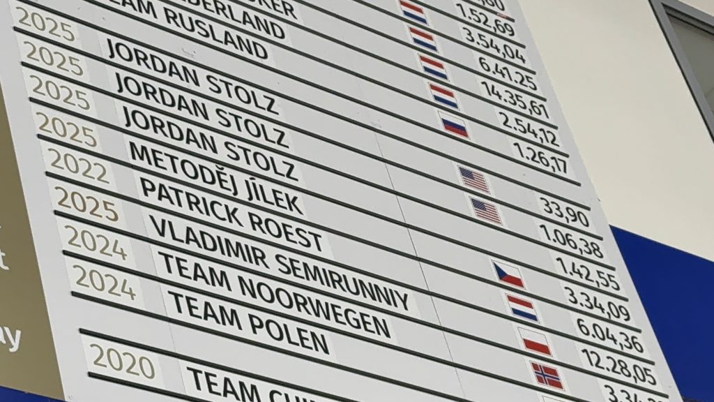 December 7, 2025 – Heerenveen, Netherlands – On the final day of the ISU World Cup at the Thialf, 21-year-old Jordan Stolz — dubbed by the Dutch announcers as “The Phenom from America” — shattered yet another track record, blazing to a 33.90 in the 500m, his third record-breaking performance of the weekend.