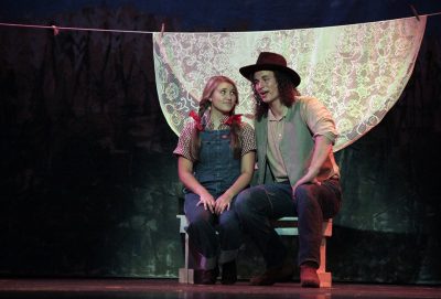 For technical aspects of the production the set, designed by Amy McCall, was minimalistic, yet effective. Picture a quaint farm house overlooking nothing but a windmill and miles and miles of prairie land and you have the set of Oklahoma! – Charming, sweet, and rural. Lighting set the tone and temperature for the production and utilized the bright set. Also brilliantly executed were costumes designed by Chris Dwyer; the pieces were period appropriate and properly sized for the cast. Overall the production elements of Oklahoma gave the town extra character and life.