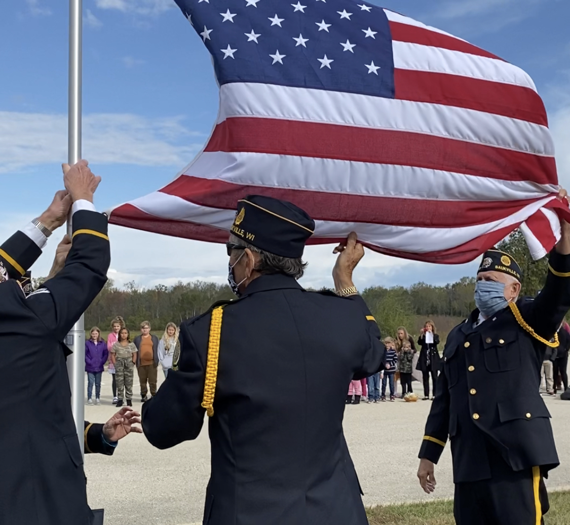 October 1, 2020 – Town of Trenton, WI – Students at Ozaukee Christian School joined members of the Saukville American Legion for a dedication this week as the Legion donated a flagpole to the school. A ceremony was held as veterans raised the U.S. flag.