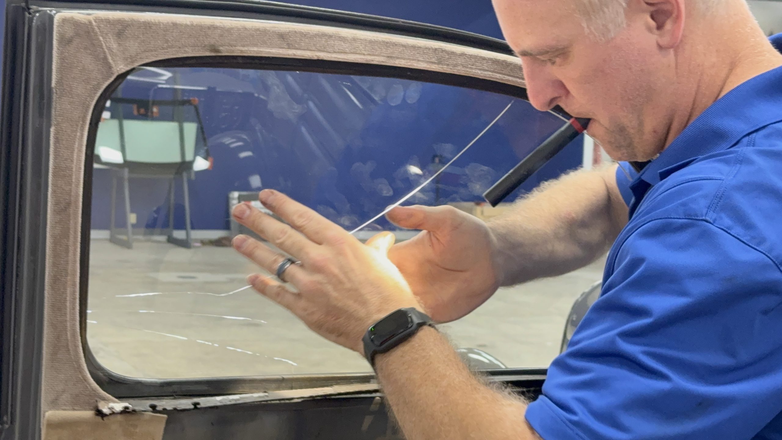Thanks to having the right piece of glass in stock — and the right tint to match — Glass Dr. expects to have the Ford’s window finished by the end of the week.
