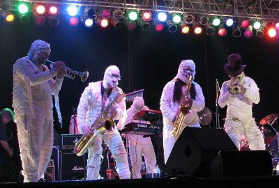 With band member names like Mummy Cass, Eddie Mummy, Spazzy Mummy, KW Tut, Mummy Rah and others, this secretive band with several professional musicians are actually dressed up in mummy-like bandages while performing live.