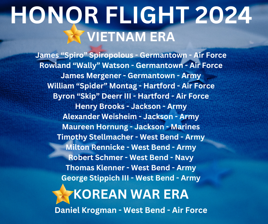 Washington County, WI, will have 14 veterans on the flight out of Mitchell International; 13 Vietnam War vets and 1 Korean War vet.