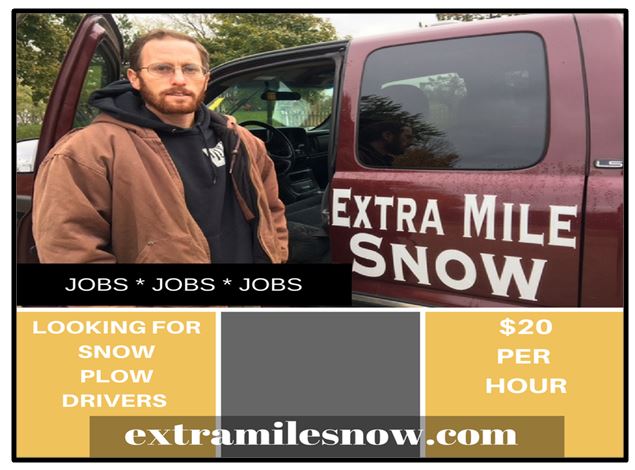 Oct. 29, 2016 – West Bend, WI – Contact Aron Rodman at Extra Mile Snow in West Bend if you’d like to earn $20 an hour this winter season. More information at extramilesnow.com