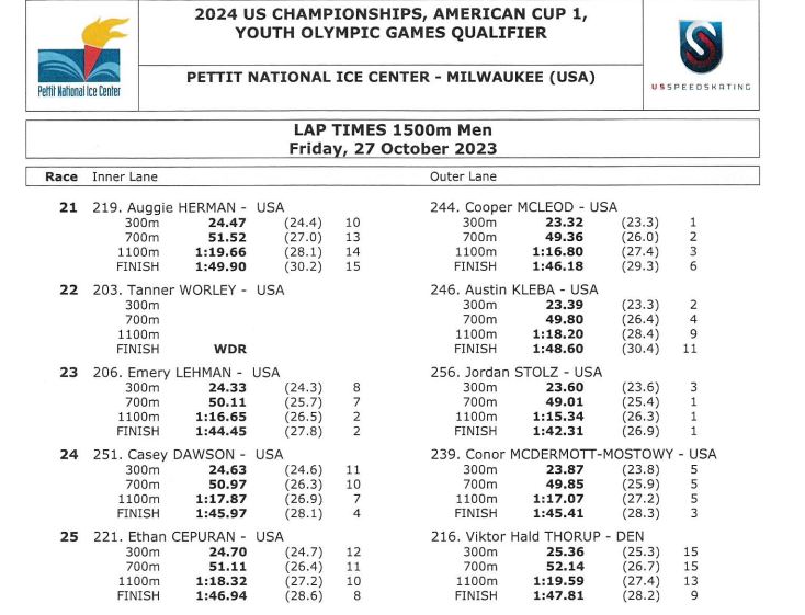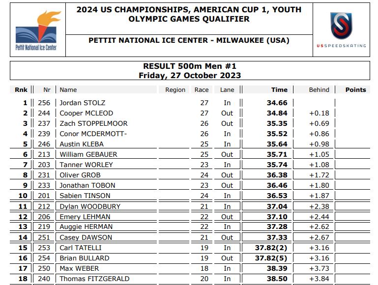 Click HERE for weekend results from U.S. Speedskating at the Pettit National Ice Center.