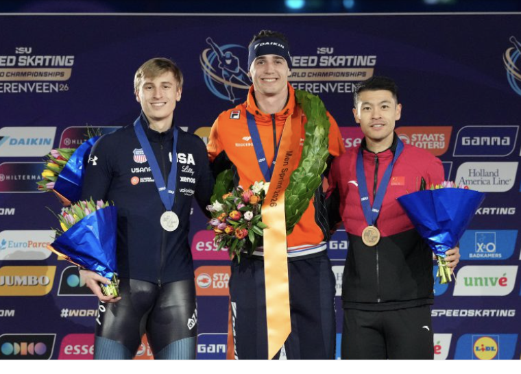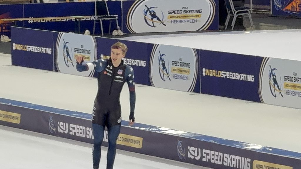 March 7, 2026 – Heerenveen, NL – After racing the Sprint Championships earlier in the week, Jordan Stolz continues an ambitious push at the ISU World Allround Speed Skating Championships, skating his sixth race in three days on Saturday in Heerenveen.