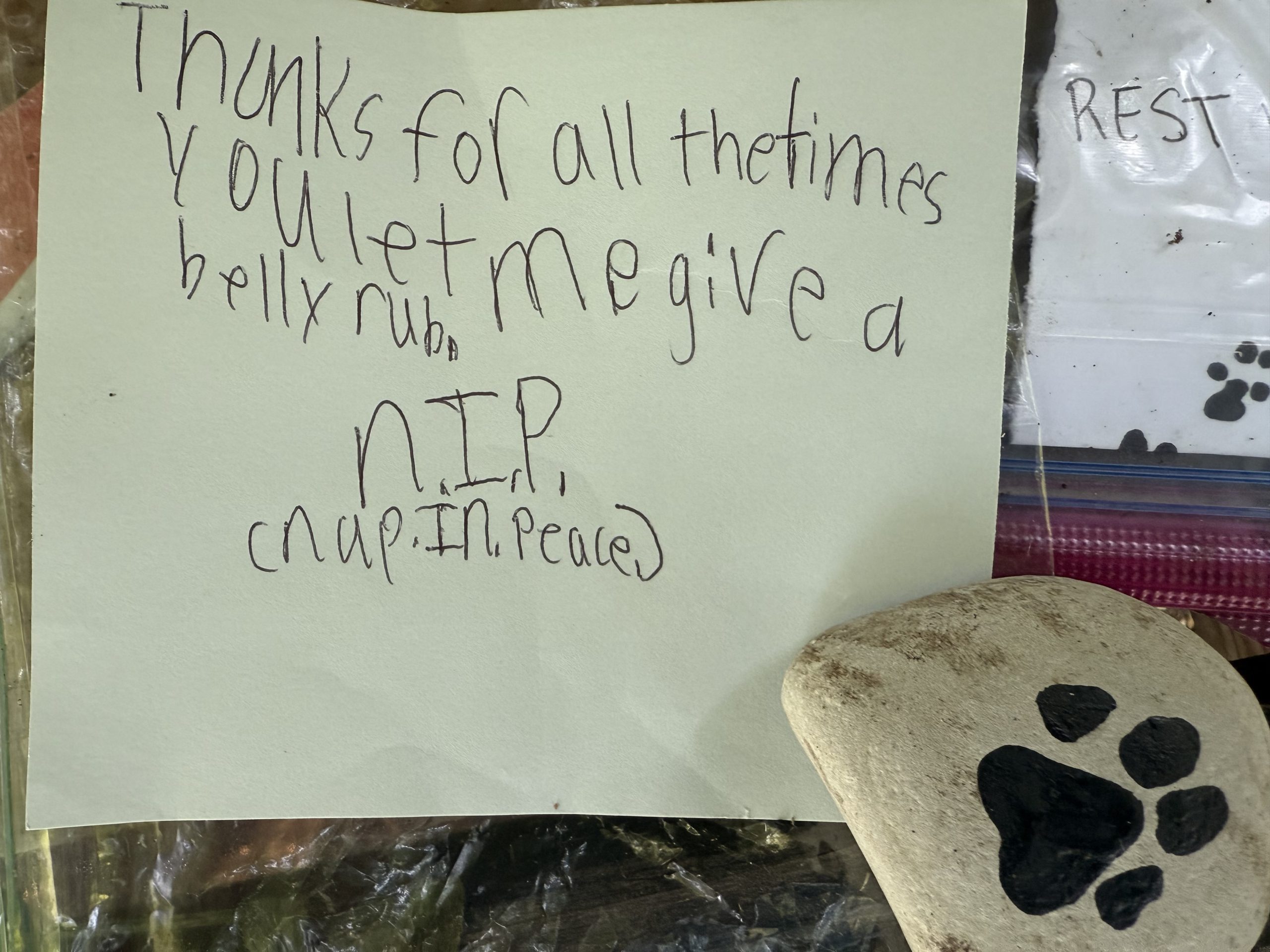 Some of the notes expressed fondness for the cat, especially when he would “walk with me on the trail all the way through when it was dark and spooky.”