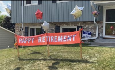September 14, 2020 – West Bend, WI – There was a lot of horn honking and well wishes on Bluebell Drive in West Bend as friends, faculty, and former UWM at Washington County athletes paid tribute to coach and retiring athletic director Deb Butschlick.