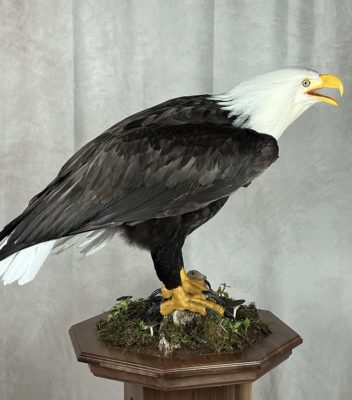 “I color and trim the feathers to size and shape, and the head is a cast I made from a female bald eagle,” said Stolz.