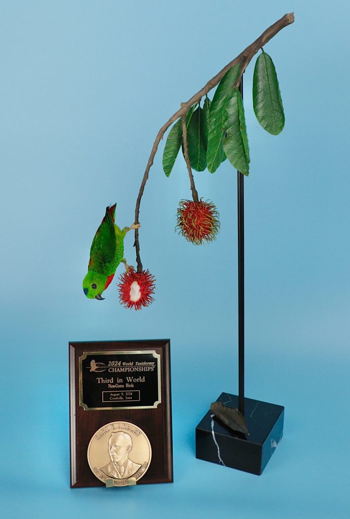 August 27, 2024 – Town of Wayne, WI – Hannah Stolz from the Town of Wayne, WI, took third place in the 2024 World Taxidermy & Fish Carving Championship held in Coralville, Iowa. The 21-year-old Stolz entered the non-game bird division.