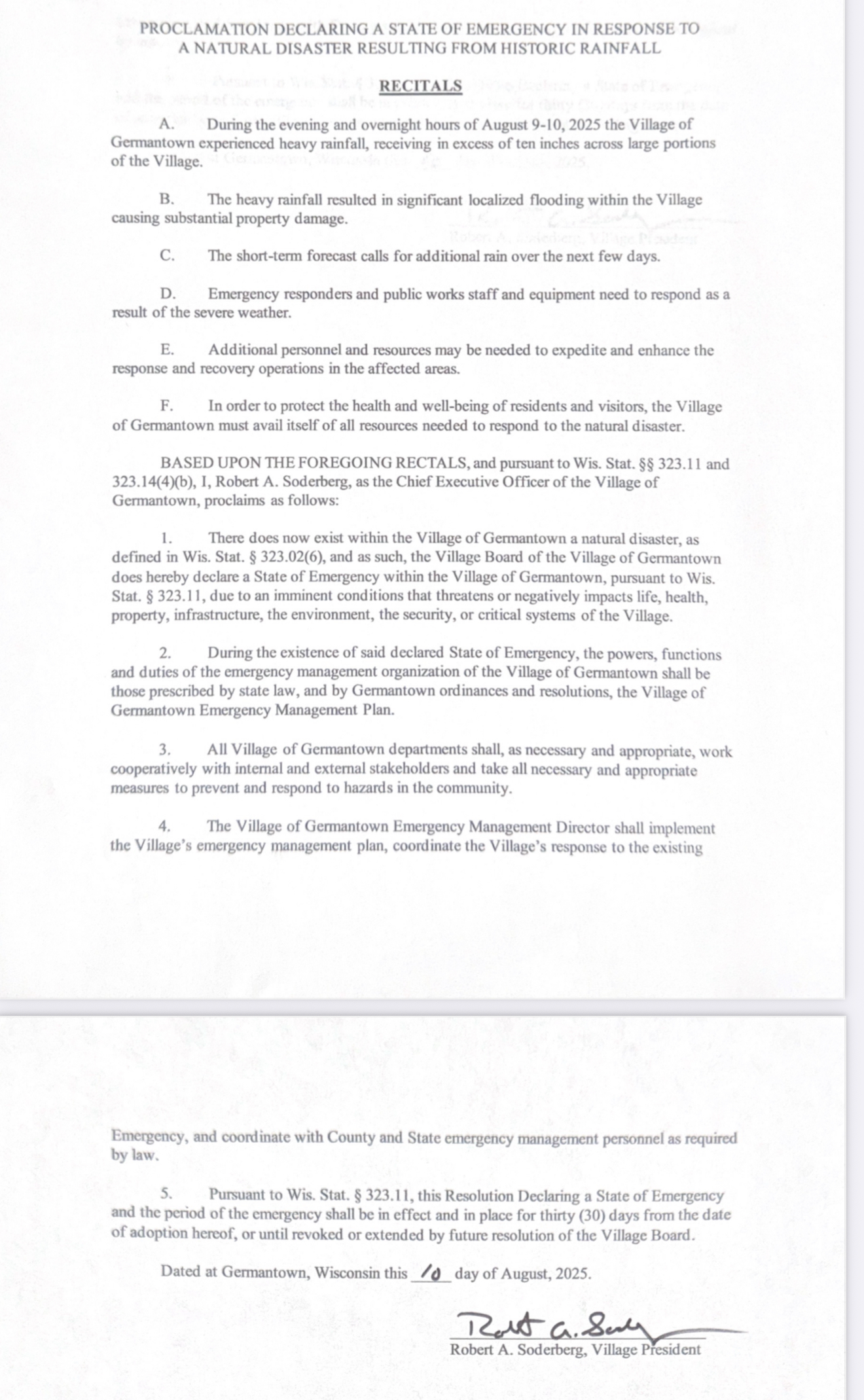 The Village of Germantown declared a State of Emergency after posting a second sanitary sewer overflow notice.