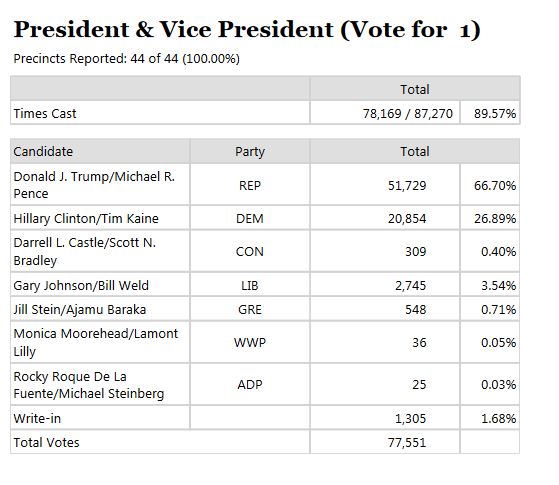 Presidential & VP results in Washington County