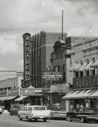 The first Walgreens in West Bend was on the east side of Main Street in the downtown. It was part of West Bend Drugs, located where the Candy Man is now, 121 N. Main Street. The sign read Walgreens Agency.