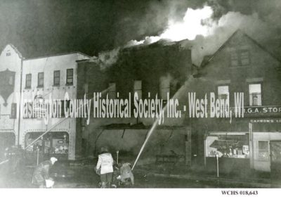 The headline in the West Bend News read: Main St. Business Section Is Threatened as $40,000 Fire Destroys Westphal Building.