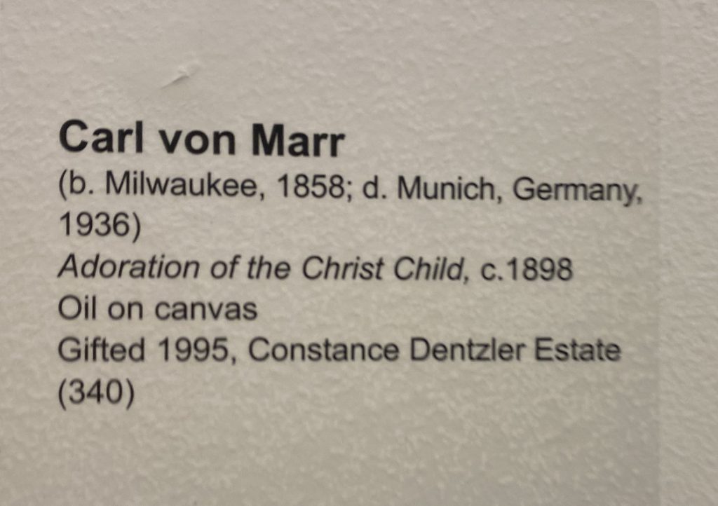 West Bend, WI – During this week leading up to Mother’s Day. the Museum of Wisconsin Art, 205 Veterans Ave., West Bend, WI, is saluting moms in the community with one of the most well-known paintings of a mother and child. Adoration of the Christ Child (aka The Holy Family) was painted by Carl von Marr around 1898.