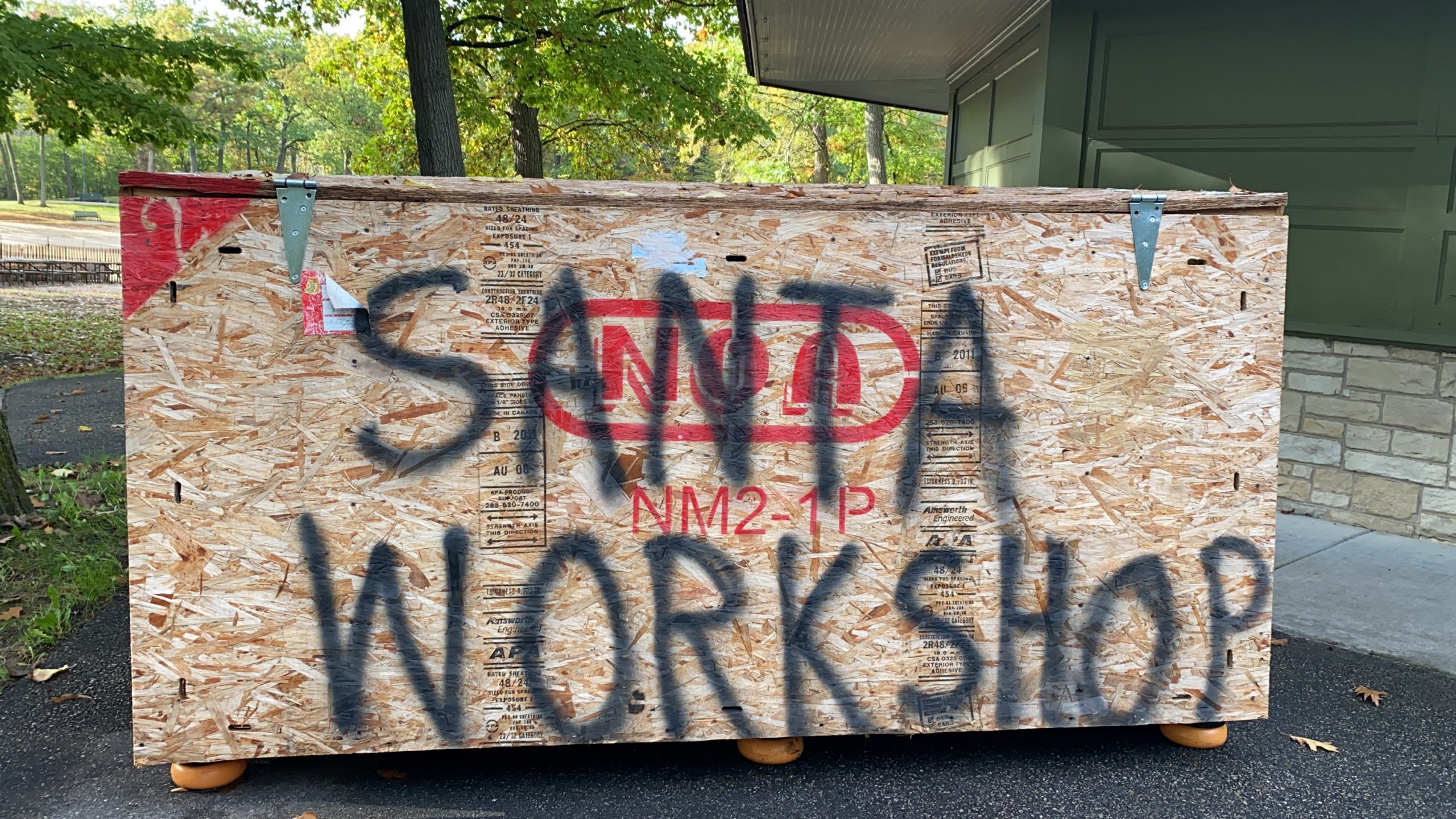 October 14, 2021 – West Bend, WI – A transformation took place this week as the Rotary shelter at Regner Park was turned into Santa’s Workshop for the upcoming Enchantment in the Park.