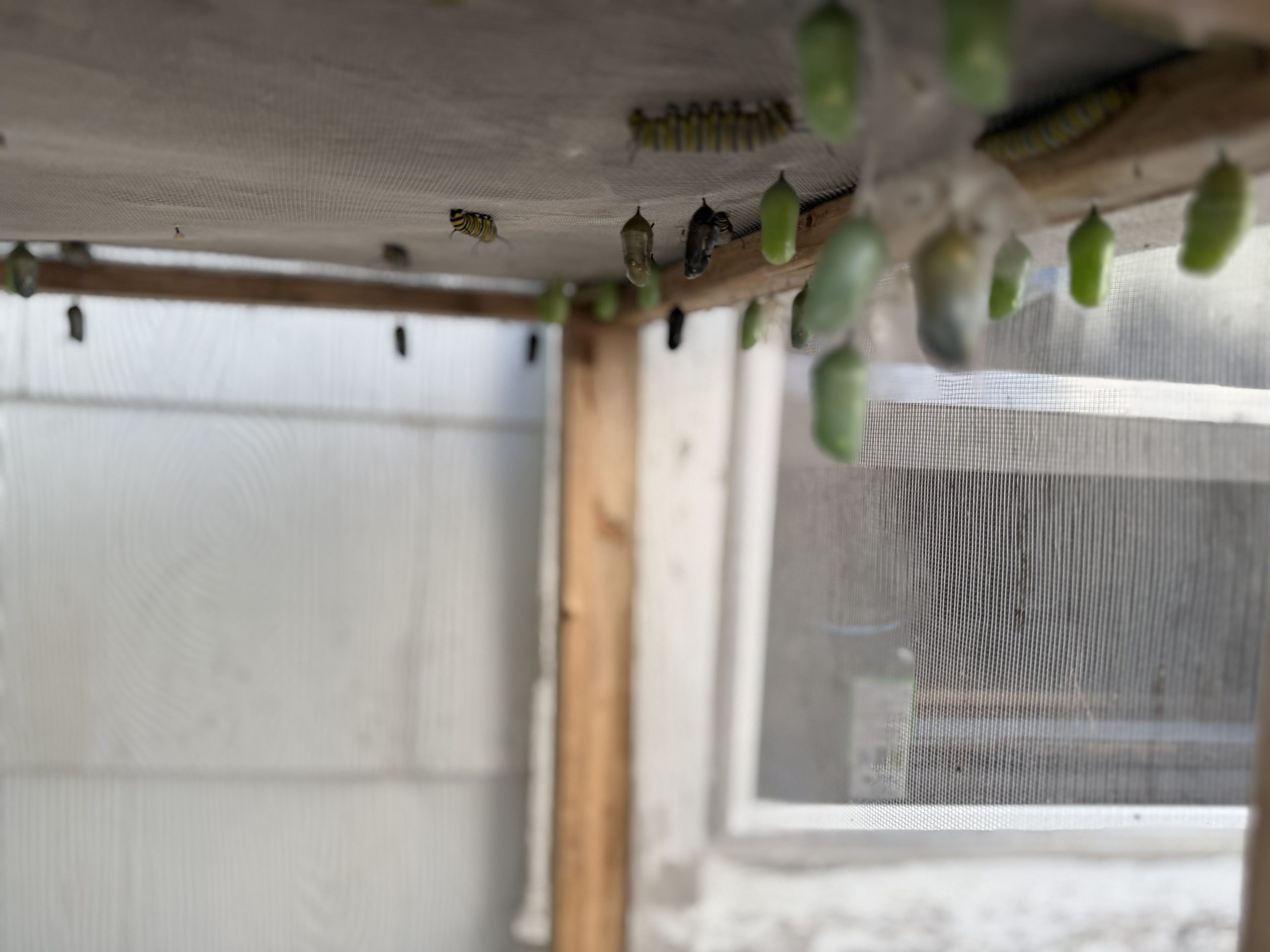 “So, I picked milkweed every morning, and I’d collect pure rainwater,” said Lawrenz. “I’d wash the milkweed, and cut it, and put it in my habitat. I’ve got a lot of containers that I call my lodge; I fill and refill the milkweed for the caterpillars.”