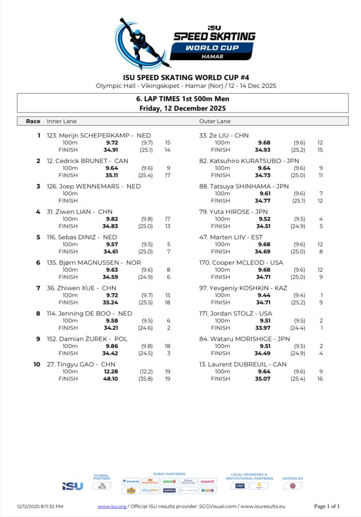 December 12, 2025 – Hamar, Norway – A big weekend on tap in Hamar, Norway as Jordan Stolz skates in his last ISU World Cup, December 12 – 14, before the Olympic qualifier at the Pettit National Ice Center in Milwaukee, January 2 – 5, 2026.