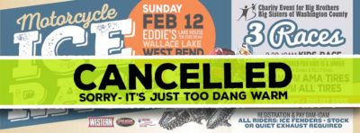 Feb. 10, 2017 – West Bend, WI – Note from headquarters: We have made the decision to cancel Sunday’s event for the race at Wallace Lake. The parking area is not solid and will be all mud, along with that we are starting to see standing water on the lake.