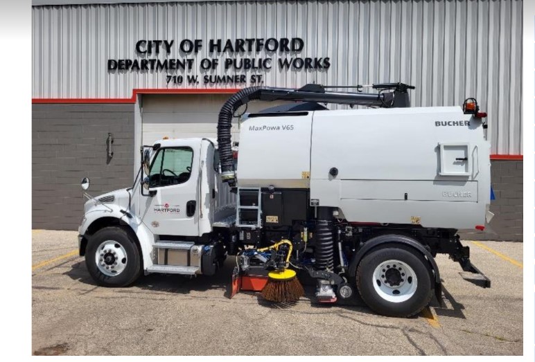 Hartford, WI – The City of Hartford Public Works Department, 109 N. Main St., Hartford, WI, recently took delivery of a 2023 Bucher street sweeper. The Department has already had the new vehicle out cleaning the streets.