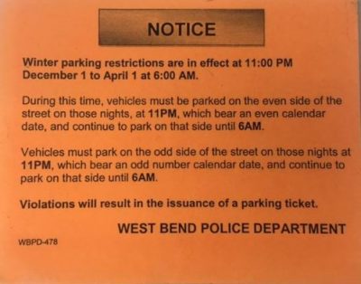 Winter street parking regulations for West Bend, Slinger, Kewaskum, and Hartford