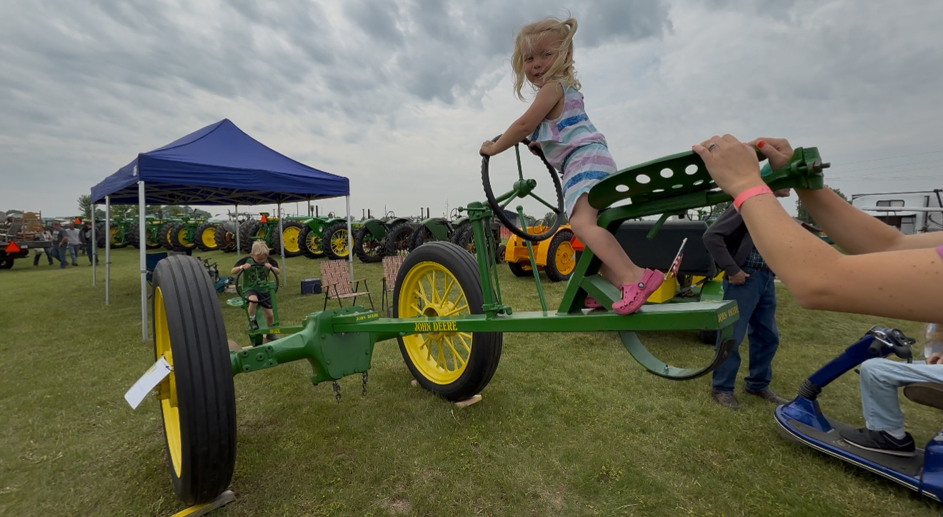 West Bend, WI – Probably one of the favorite events for kids at the 2025 Classic Green Reunion is the change for them to drive their first John Deere tractor. It’s a real tractor … and makes the kid feel like a superhero because they really get to steer.